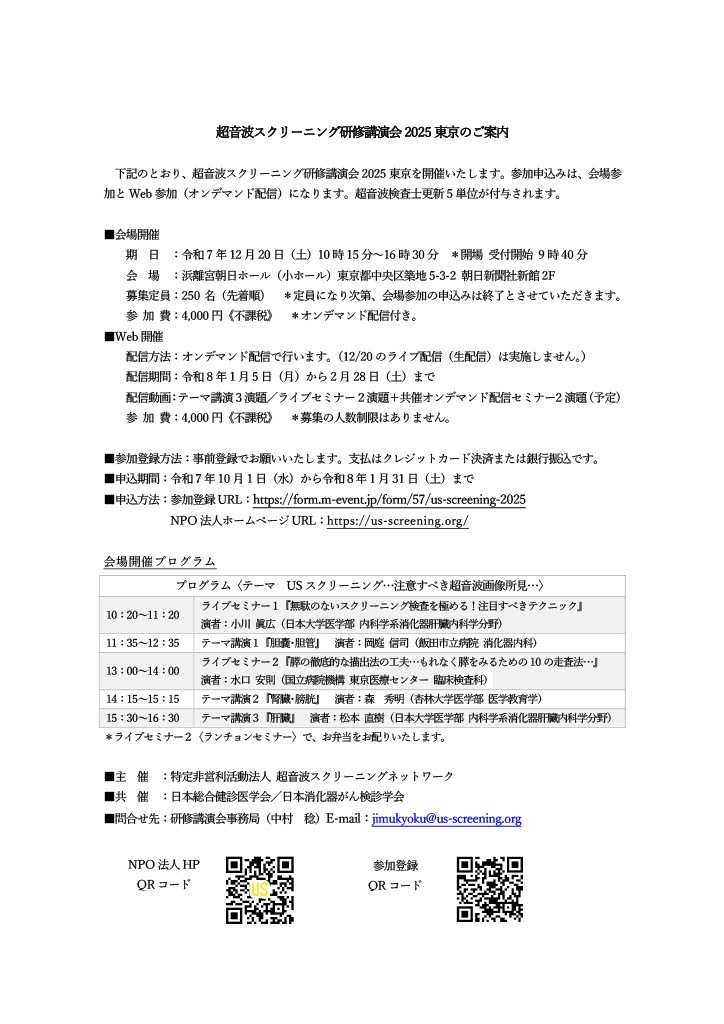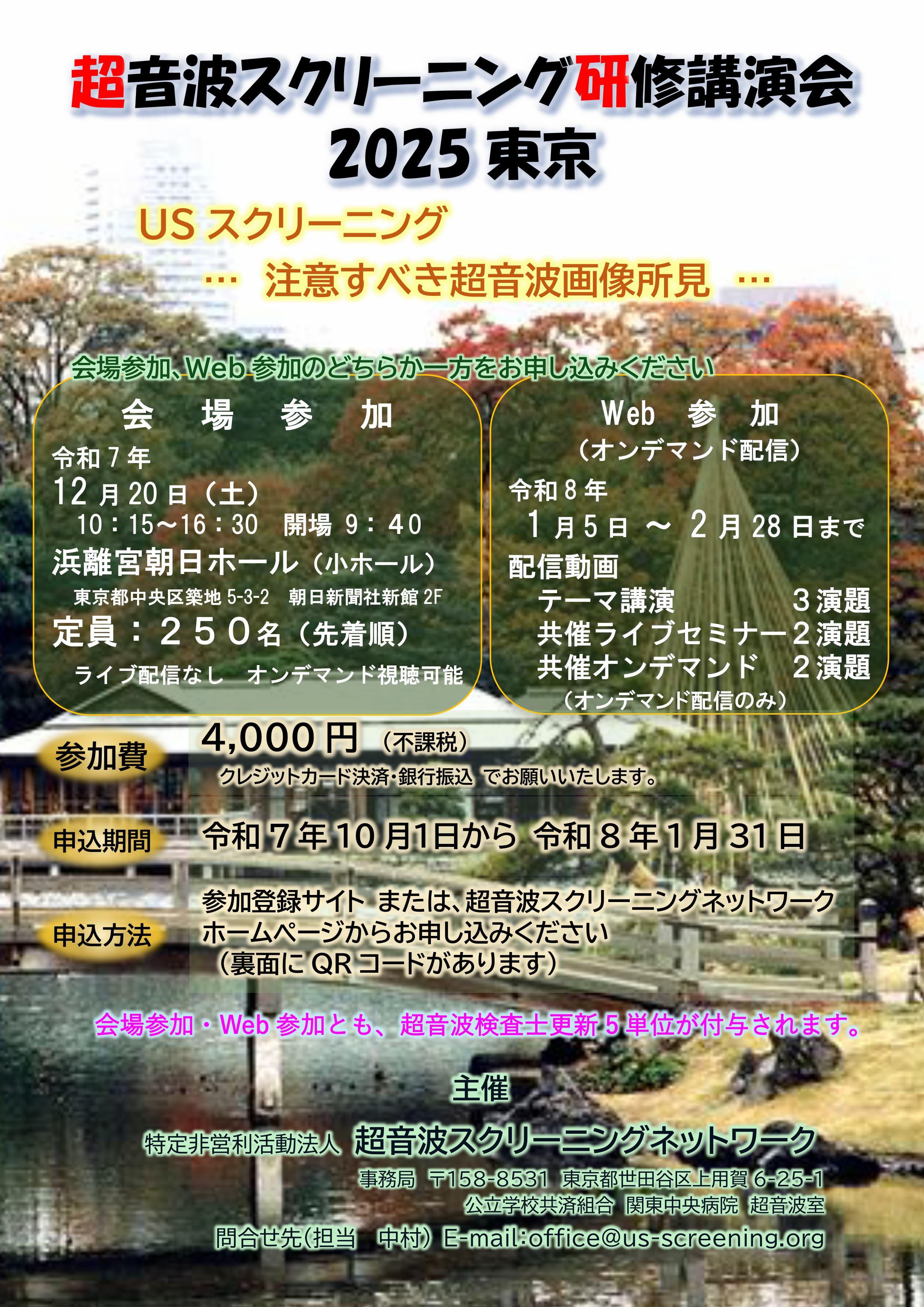超音波スクリーニング研修講演会2025東京が開催されます。
